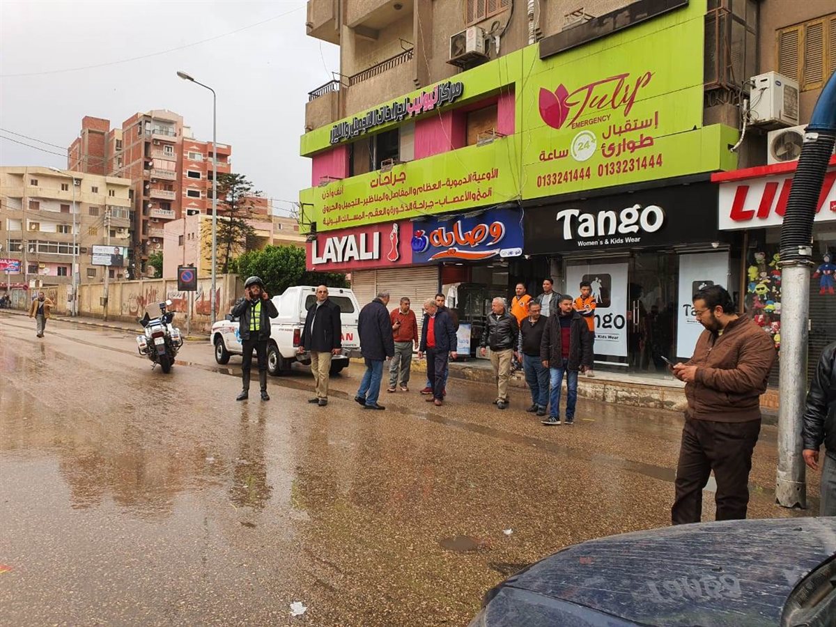 والتقى المحافظ مع المواطنين بالشوارع، مؤكدا أن المحافظة مستعدة منذ فترة للتعامل مع الظروف الجوية غير المستقرة