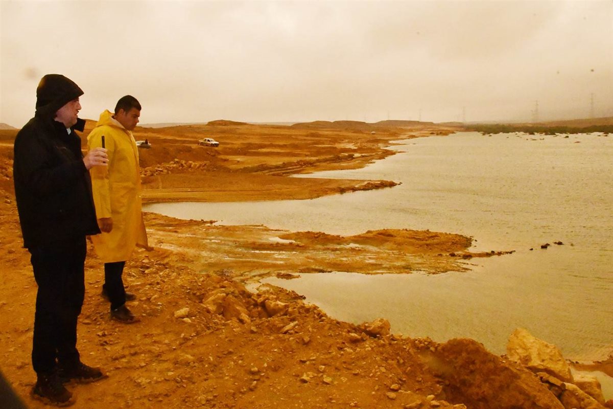 كما تفقد وزير الإسكان، ومرافقوه، سدود وبرك التخزين، في مشروع الغابة الشجرية بمدينة القاهرة الجديدة، حيث اطمأن على منسوب المياه بالبرك، وكذا تابع السدود الترابية التي تم تنفيذها وتدعيمها لمنع تسرب المياه، موضحاً أنه جارٍ الانتهاء من تنفيذ رافع بطاقة 150 الف متر مكعب، وتنفيذ الخط الناقل للمياه المعالجة لمنطقة الامتداد.