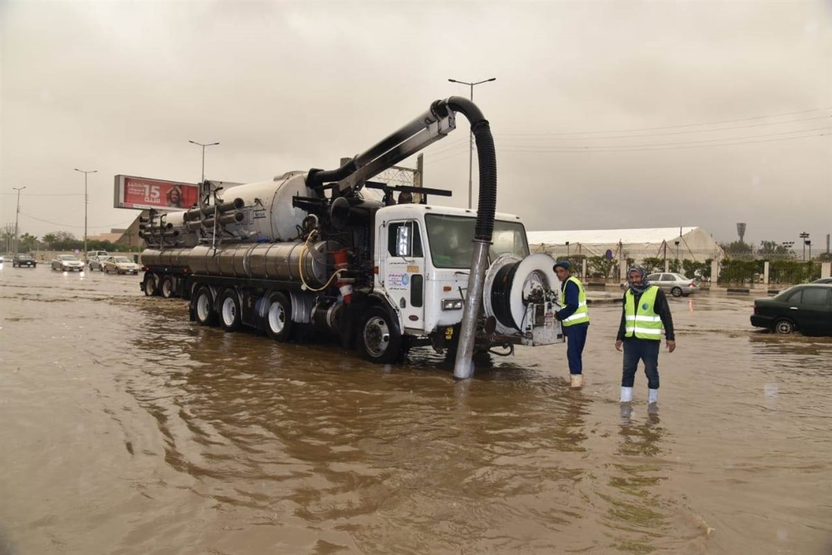 وأوضح أنه تم الدفع بأكثر من 1380 معدة وسيارة شفط مياه الأمطار بمختلف المحافظات، موزعة على النحو التالي (92 سيارة شفط مياه وعدد 14 بدالة و 2 سيارة سيول بمحافظة الإسكندرية– و100 معدة بالقاهرة– 60 بالجيزة–84بالقليوبية– 181 بأسيوط– 65 معدة بالدقهلية- 137 معدة بالغربية– 20 ببني سويف– 69 بالمنوفية– 98 بكفر الشيخ– 75 بالبحيرة– 32 بالفيوم- 60 بالشرقية– 11 بالاسماعيلية– 11 ببورسعيد– 6 بالسويس_ 75 بمطروح– 32 معدة بالبحر الأحمر- 61 معدة بالاقصر- 95 معدة بالمنيا)، فضلا على عدد العاملين الذي جاوز 3 آلاف عامل من الشركات التابعة للشركة القابضة.