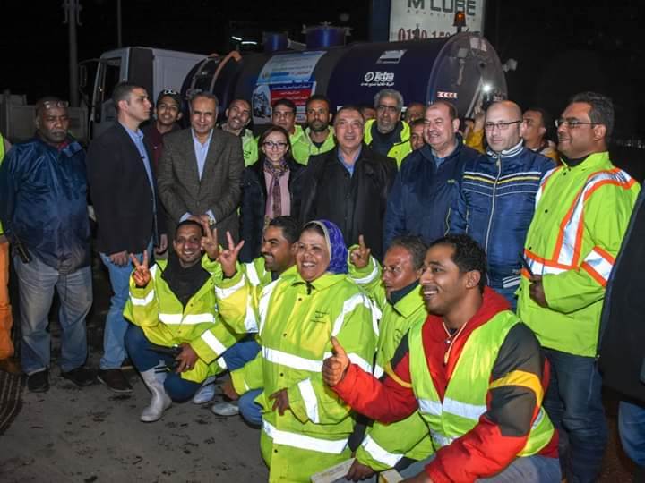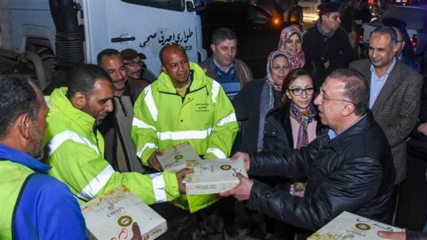 الشريف يوزع وجبات ساخنة على عمال الصرف الصحي