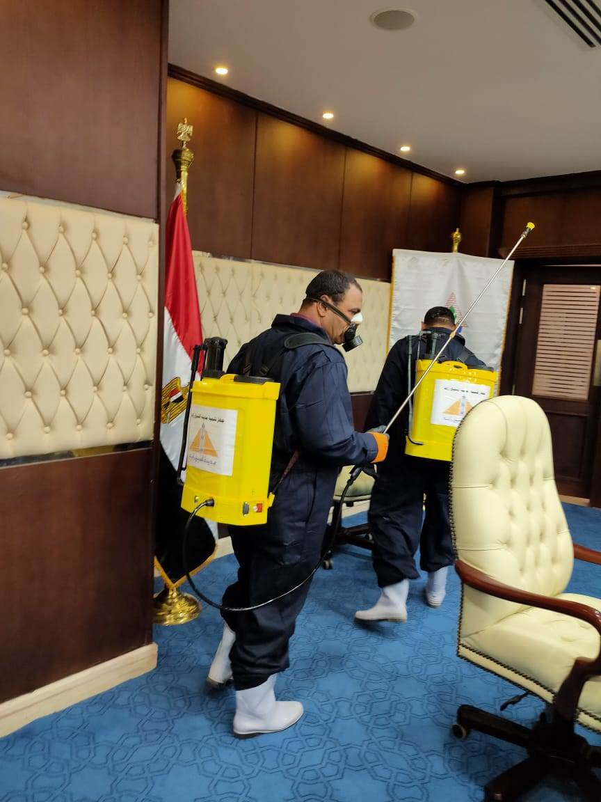 وقال المهندس عبدالمطلب ممدوح: اتخذت بعض الأجهزة عدة إجراءات احترازية وقائية تتمثل فى تطهير وتعقيم وسائل النقل الداخلى والخارجى يومياً، وتوعية السكان بطرق الوقاية من فيروس كورونا، وإطلاق حملة لتوعية العاملين بمخاطر الفيروس، وطرق الوقاية منه، ووضع بعض التعليمات الإرشادية، والتشديد على العاملين والمترددين على المكان بضرورة تنفيذ التعليمات حفاظا على صحة الجميع. وأوضح المهندس ممدوح رسلان، رئيس مجلس إدارة الشركة القابضة لمياه الشرب والصرف الصحى، أنه تم تنفيذ حملات توعوية للوقاية من الإصابة بفيروس كورونا، بجميع شركات مياه الشرب والصرف الصحى، وتم تعليق اللافتات والبانرات التوعوية، كما قامت فرق التعقيم والتطهير فى كل شركات مياه الشرب والصرف الصحى، بتطهير وتعقيم مكاتب الموظفين، وخدمة العملاء، وغيرها من المبانى التابعة للشركات، حماية للعاملين،والمترددين.
