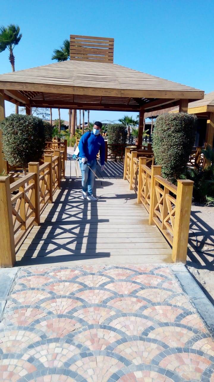 وتقوم هذه الفرق بتطهير جميع الأسطح الملامسة للسائحين والنزلاء ومرتادي الفندق كل ٣ ساعات وذلك بالمناطق العامة والممرات والغرف الفندقية والمصاعد والسلالم والأبواب والمقابض الخاصة بها وغيرها من الأماكن الملامسة للإنسان.