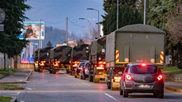 فيما أعلنت السلطات الإيطالية، عن وفاة 627 شخصا في أنحاء البلاد بسبب تفشي فيروس كورونا المستجد ، اليوم الجمعة ليرتفع العدد الإجمالي للوفيات ارتفع في البلاد إلى 4032 شخصا،أمرت إيطاليا الجيش بنقل الجثث من بؤرة تفشي الفيروس التاجي، بعد تزايد أعداد ضحايا كورونا، وجعل نظام خدمات الجنائز، غير قادر على استيعاب أعداد المتوفين .. وفقا لما نشرته صحيفة “مترو البريطانية.