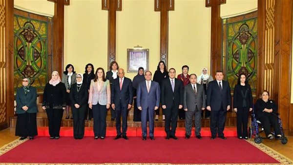 الرئيس عبد الفتاح السيسي يلتقي بقصر الاتحادية صباح اليوم مع عدد من السيدات المصريات من مختلف المجالات بمناسبة الاحتفال بعيد المرأة المصرية، وذلك بحضور الدكتور علي عبد العال رئيس مجلس النواب، والدكتور مصطفى مدبولي رئيس مجلس الوزراء، والسادة وزراء التخطيط والتنمية الاقتصادية، والمالية، والصحة والسكان، والإعلام، والتضامن الاجتماعي، والسيدة رئيسة المجلس القومي للمرأة.