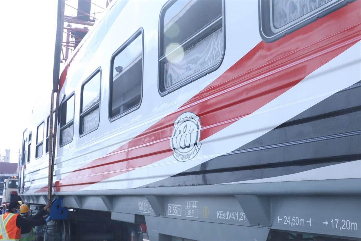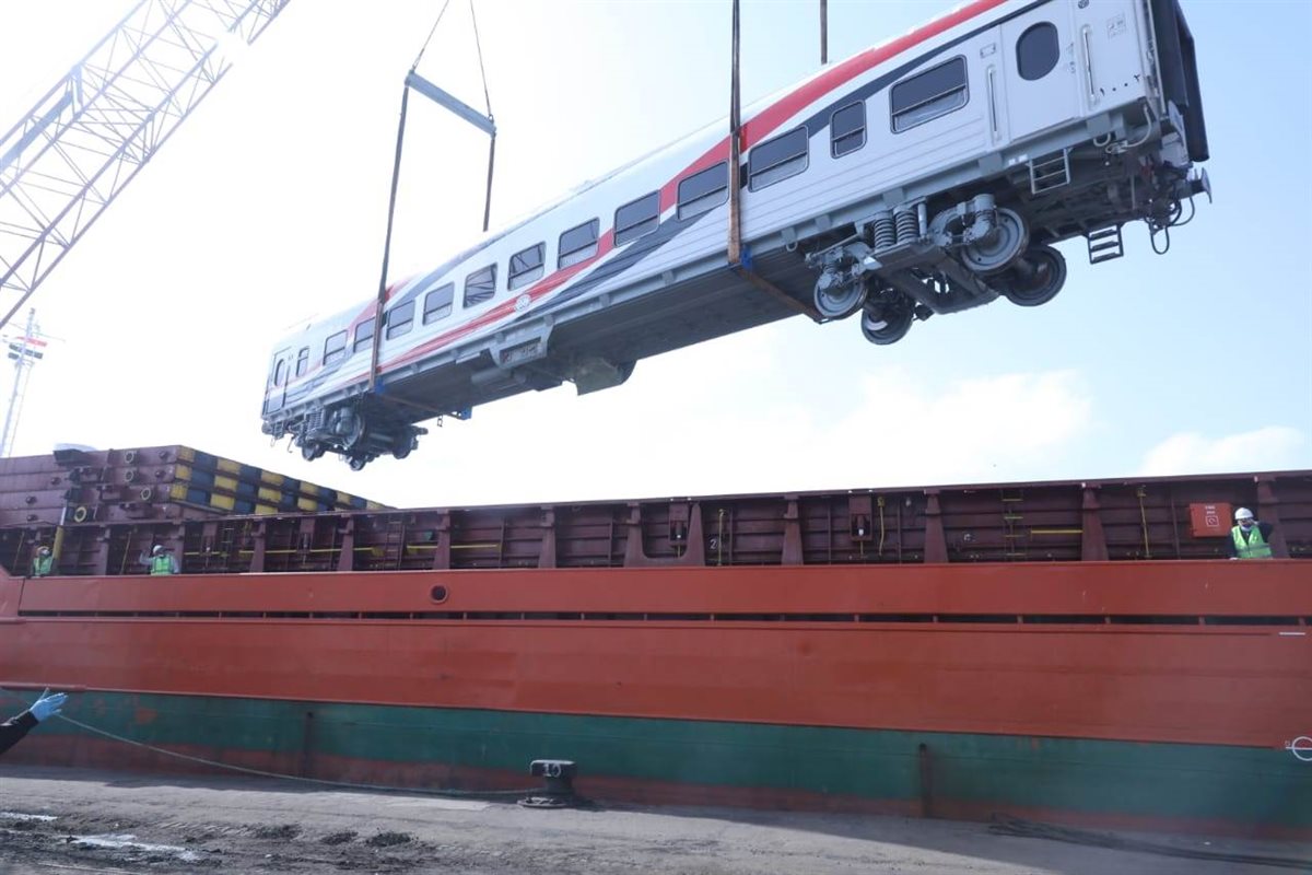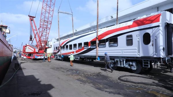استقبلت ميناء الإسكندرية، اليوم العربة النموذج الاولى ضمن صفقة توريد 1300 عربة سكة حديد جديدة للركاب.