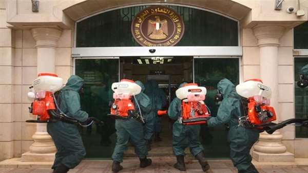 وفى سياق متصل تم دفع أطقم التطهير المتخصصة بوسائل التعقيم المحمولة لإجراء أعمال الوقاية اللازمة بوزارة التعاون الدولي وما تحتويه من مقرات ومكاتب وقاعات للمؤتمرات والاجتماعات.