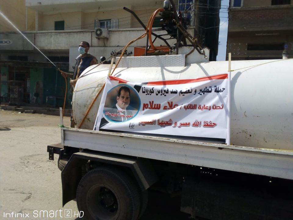 على مدى أسبوعين، استطاع النائب علاء سلام، عضو مجلس النواب عن دائرة فوه ومطوبس بكفر الشيخ، أن يقوم بتعقيم وتطهير المركزين بكل قراهم على نفقته الخاصة بالمواد المطهرة والمعدات الخاصة بالتطهير، بمشاركة الشباب ورجال المحليات.