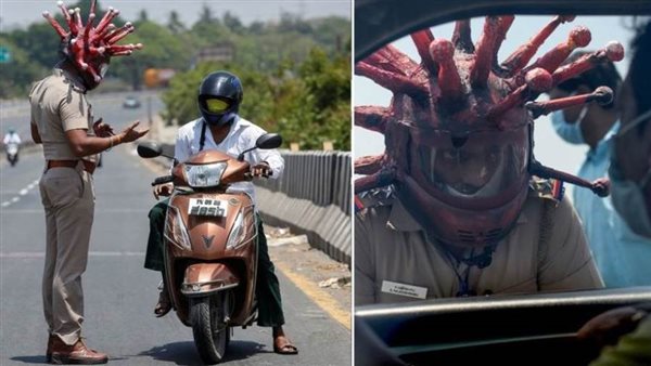 ابتدع ضابط الشرطة الهندي، راجيش بابو، وسيلة جديدة لحض الناس وحثهم على البقاء في البيوت، بارتداء خوذة تبدو وكأنها فيروس "كورونا"، الأمر الذي أدى لإخافة الناس عندما رأوه في دورية، حيث يتم إغلاق البلاد لمدة 21 يومًا للحد من انتشار الفيروسات التاجية.