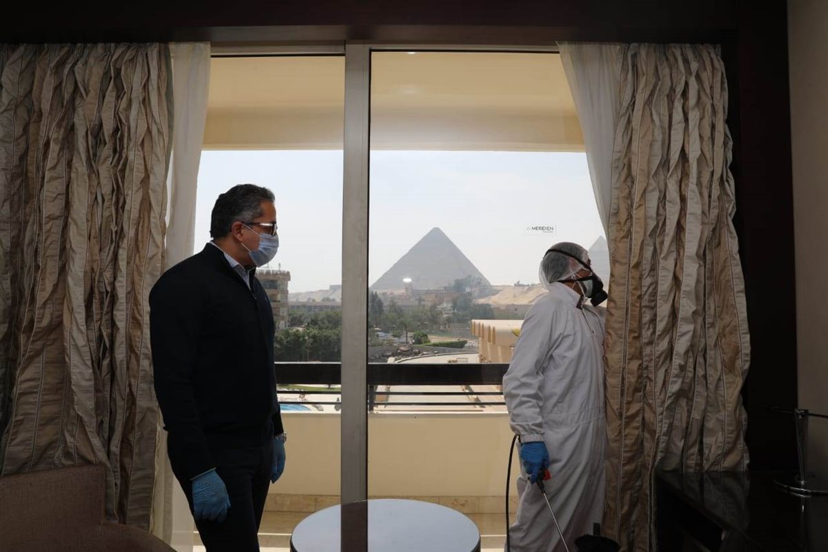 جدير بالذكر أن وزارة السياحة والآثار تقوم بأعمال تطهير وتعقيم واسعة شملت جميع المتاحف والمواقع الأثرية في جمهورية مصر العربية، بالإضافة إلى تعقيم وتطهير عدد من الفنادق في الغردقة وخليج مكادي والجونة وجنوب سيناء والأقصر وغيرها من المدن السياحية بالتعاون مع غرفة المنشات الفندقية.