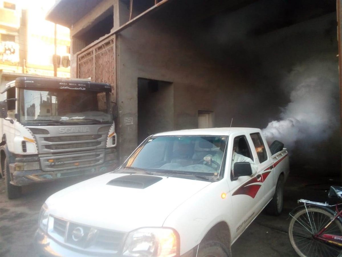 وفي سياق متصل قامت الإدارة العامة لمكافحة الأمراض المتوطنة بالمديرية، بتكثيف برنامج المقاومة، لمكافحة يرقات الذباب والذباب البالغ علي تجمعات القمامة بأجهزة الضباب، ومواتير الرش الأرضية، والرشاشات الظهرية لمكافحة الحشرات الزاحفة بدورات المياه العمومية، ومقالب القمامة العمومية، وتجمعاتها، ومحلات بيع الأسماك، وتنظيف الطيور، والمجازر، والقيام بأعمال الترصد الحشري لليرقات بالتجمعات المائية، والإلتزام بالتعليمات في المقاومة الصباحية والمسائية في جميع مراكز ومدن المحافظة.