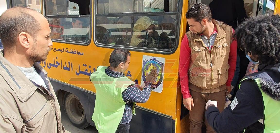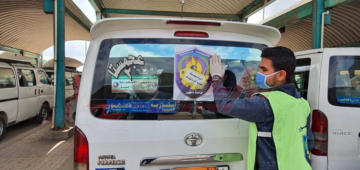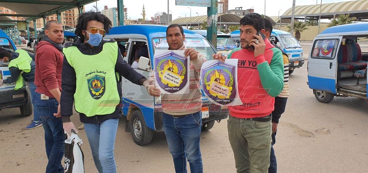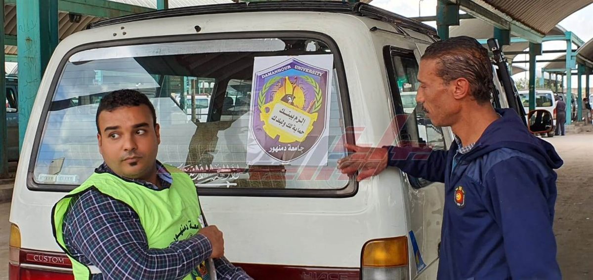 تواصل جامعة دمنهور حملتها "إلزم بيتك حماية ليك ولبلدك" للوقاية من فيروس كورونا المستجد من خلال قيام فريق من طلاب جامعة دمنهور بتوزيع ووضع ملصقات التوعوية للمواطنين علي سيارات الأجرة والنقل العام بإعتبار أن هذه السيارات تنتشر في مختلف المحافظات والمدن والمراكز والقري.