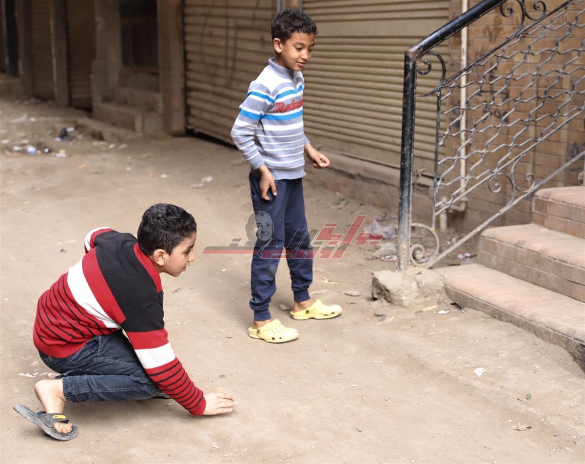 بأياديهم الصغيرة، يمسكون أدوات لعبهم "البلي"، أمام منازلهم، يتحسسون الأرض ليصيبوا الهدف، الذي تطلبه لعبتهم، فيتفوق أحدهم على الآخر.. وبسؤالهم: ألا تخافون من ڤيروس كورونا؟ قال إسلام بتلقائية، "إحنا بنلعب بس لحد الساعة 5 عشان في التليفزيون قالوا المرض بييجي الساعة 5".
