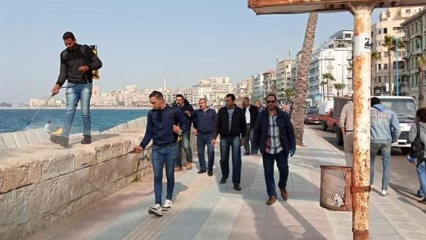 جاءت الحملة بتواجد كل من صلاح العدروسي مدير إدارة إشغالات الطريق وحمدي حسان وكيل إدارة الاشغالات وتم الدفع بمعدات الحي الخاصة بالتعقيم باستخدام مادة الكلور لتطهير الكورنيش وتفريق التجمعات علي سور منطقة المنشية ورأس التين.