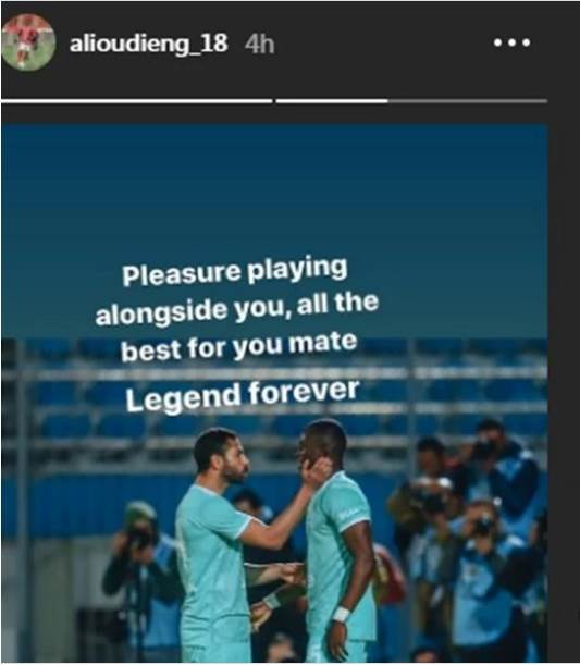 حيث نشر ديانج صورة تجمعه بفتحي عبر حسابه الشخصى على موقع التواصل الاجتماعي "انستجرام" وعلق عليها: "سعدت باللعب بجانبك، أتمنى لك التوفيق دائمًا يا أسطورة".