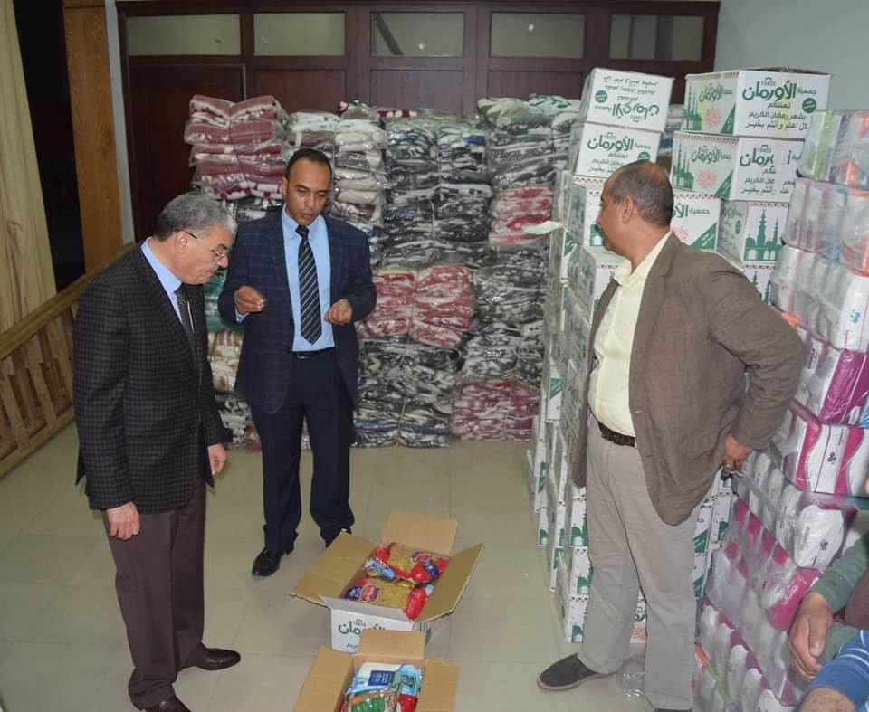 تابع المحافظ، يرافقه نائبه الدكتور محمد محمود ابو زيد، كافة التجهيزات الخاص بتلك المساعدات حيث تم تجهيز 800 كجم بطاطس– 800 كرتونة مواد غذائية– 200 حقيبة منظفات طبية– شنط مواد غذائية، 400 عبوة كلور، على ان يتم توزيعها على الاسر الأكثر احتياجا بعدد من القرى الأكثر احتياجا والاسر التي تم وضعها تحت الحجز الصحي المنزلي بقريتي القيس وابو جرج بالإضافة لإرسال مساعدات عينية للأطفال بمؤسستي البنين والبنات.