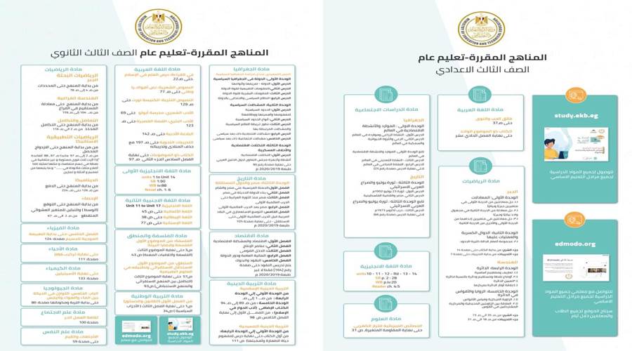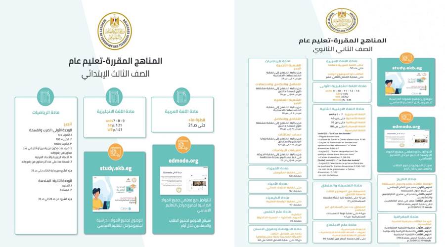 وأضافت "أنه نظرًا لكثرة الاستفسارات عن الأجزاء التي لن تدخل في التقييم في اختبار نهاية العام والتي كان مقررًا لها التدريس بعد تاريخ 15 مارس 2020 (بداية تعليق الدراسة) ، فقد تم إرسال قوائم بجميع الأجزاء بكافة المقررات والتخصصات التي لن تدخل في التقييم نهاية العام إلى المديريات التعليمية لإعلانها على صفحاتها الرسمية كما يتولى مديرو عموم التعليم الفني بالمديريات التعليمية مسؤولية متابعة إعلانها على الصفحات الرسمية للمدارس على مواقع التواصل الاجتماعي".