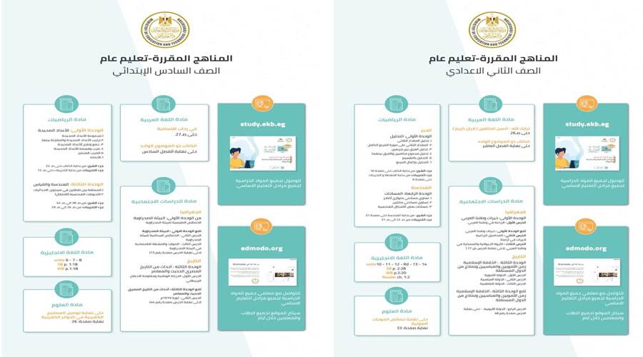 عاجل.. تعرف على المناهج المقررة على المراحل التعليمية