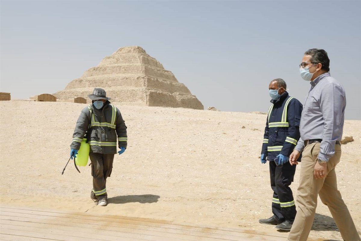 توجه الدكتور خالد العناني وزير السياحة والآثار الى منطقة آثار سقارة لمتابعة اعمال التعقيم والتطهير بها ضمن الإجراءات الاحترازية التي تتخذها الدولة للوقاية من تداعيات فيروس كورونا المستجد.
