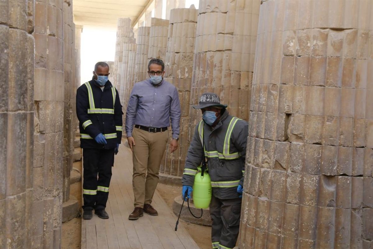 العناني يتفقد تعقيم آثار سقارة.. (صور)