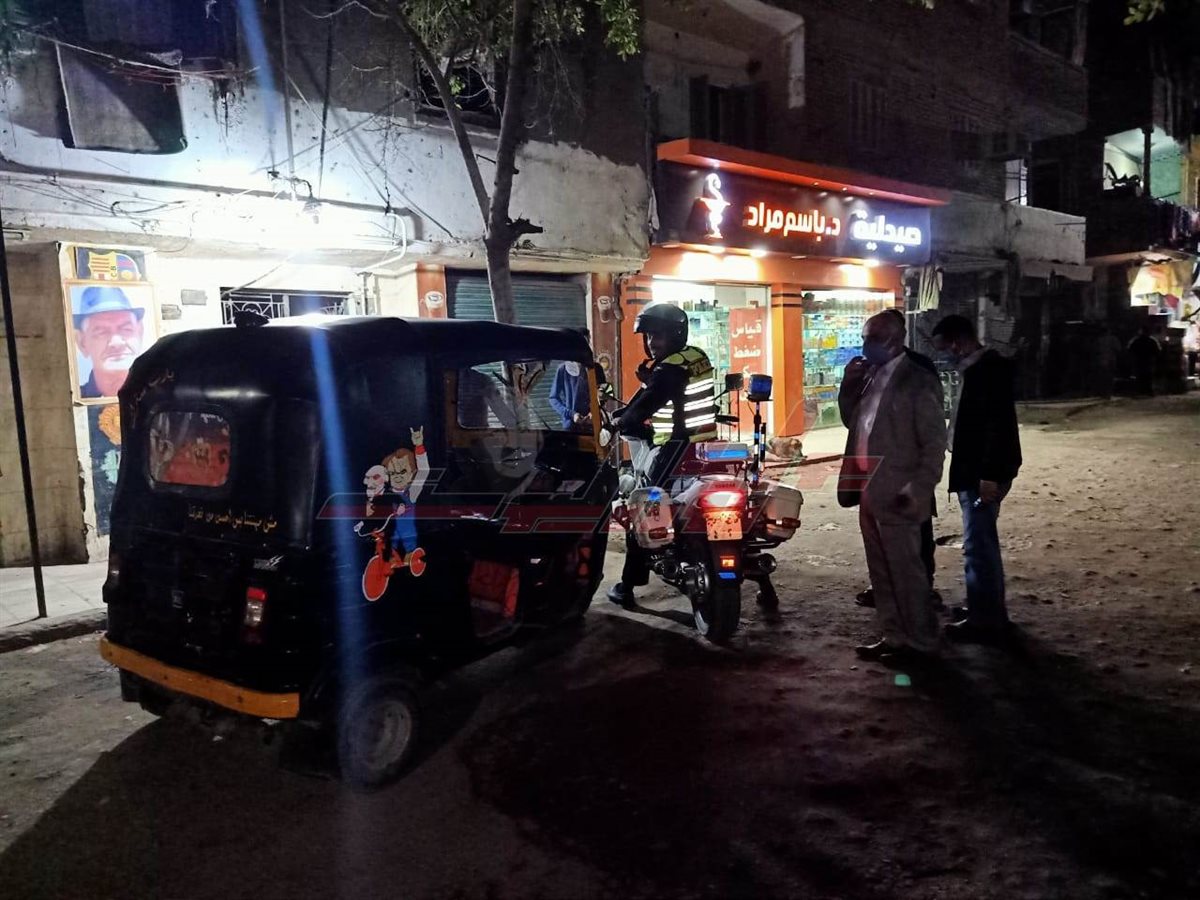 واثناء جولته تلاحظ تواجد محل مفتوح وتواجد 5 توكتوك وعدد من المواطنين مترجلين فى الشارع وعلى الفور تم حجز التكاتك بالتنسيق مع مديرية الامن واتخاذ كافة الاجراءات القانونية حيال المخالفين للحظر.