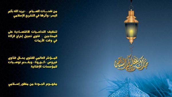 وفي باب "رؤى إفتائية" يستعرض فريق التحرير التيسير وأثره في التشريع الإسلامي وعلاقة ذلك بالصيام، والتأمل في آيات الصوم التي أسست لقاعدة فقهية مجمع عليها، من القواعد الخمس الكبرى التي هي دعائم الفقه كله، وترجع مسائل الفقه إليها، ألا وهي قاعدة "المشقة تجلب التيسير"، مع ذكر أسباب المشقة الجالبة للتيسير.