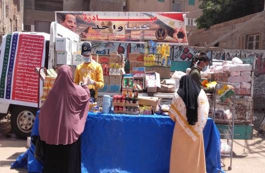 وتم التنسيق مع مديريات الأمن على مستوى الجمهورية بإقامة شوادر ومعارض لتوفير السلع الغذائية بأسعار مخفضة عن مثيلاتها بالأسواق.. وكذا التنسيق مع كبار تجار الجملة بإعداد سيارات متنقلة ومُحملة بالسلع والمواد الغذائية تجوب العديد من القرى والشوارع والميادين.