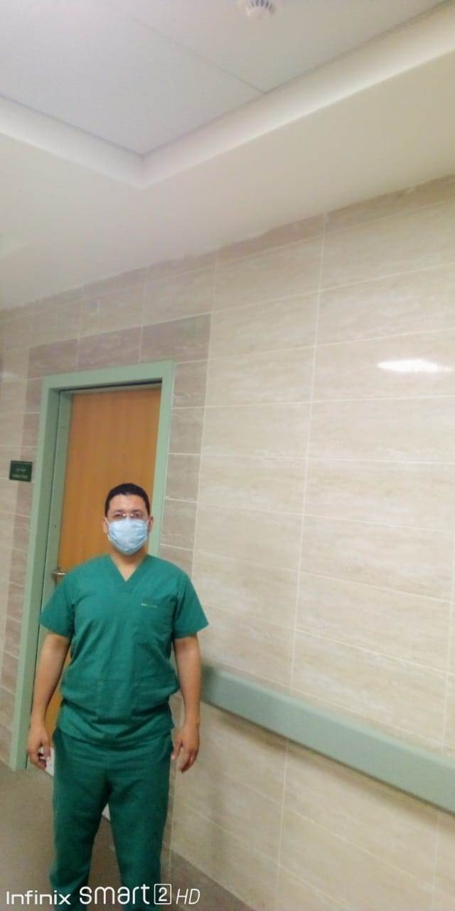 وأشار الي ان جميع الأطباء حريصون على المشاركة ولكن عند علم أسرهم بالأمر يضطر البعض للاعتذار ولهذا عند مشاركتي لم يعلم والدي ووالدتي بالأمر الا بعد قدومي للمستشفى وأخذت قراري بغلق عيادتي مؤقتا للمشاركة في هذا العمل والذي وصفه بالواجب.
