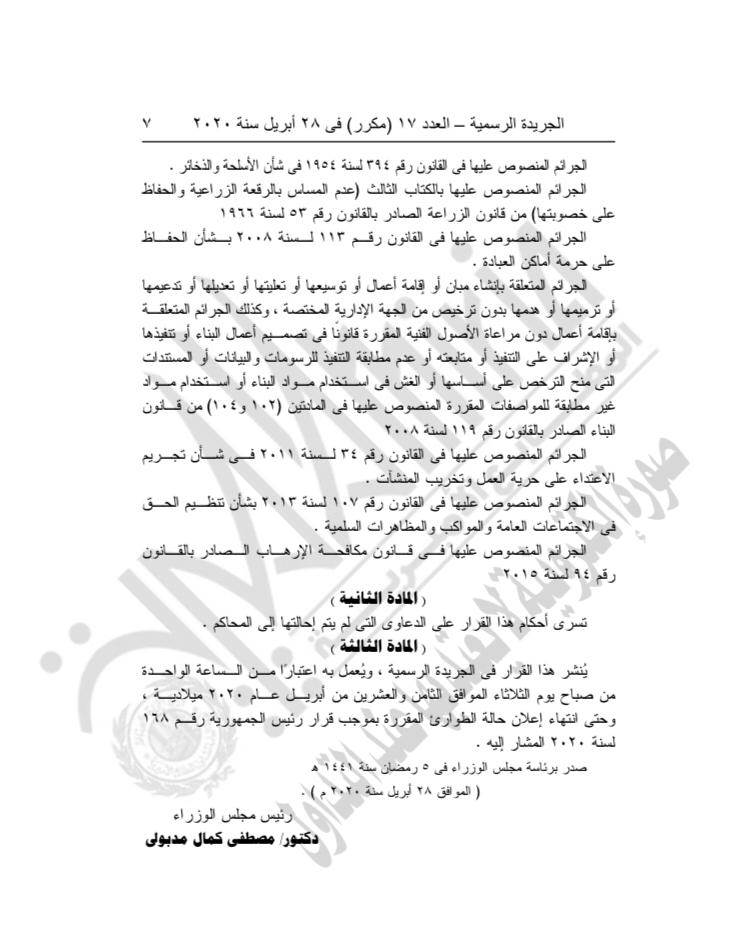 أصدر الدكتور مصطفى مدبولى رئيس الوزراء، قرارا بإحالة بعض الجرائم من النيابة العامة إلى محاكم أمن الدولة طوارئ.