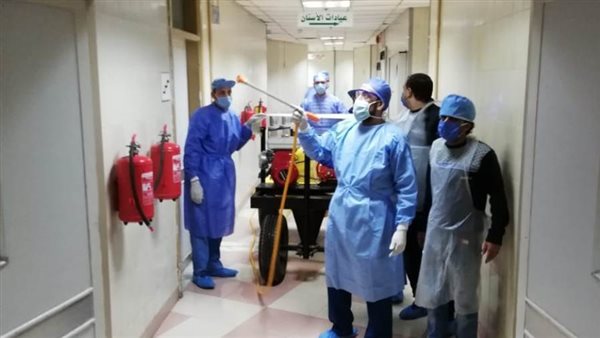 تعقيم المركز الطبي بالإنتاج الحربي باستخدام ماكينة رش مصنع ٩٠٩ الحربي