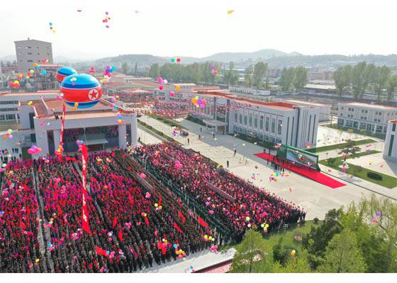 وأشارت وكالة الأنباء المركزية الكورية (KCNA) إلى أن الحاضرين "رددو هتافات مدوية" عندما ظهر الزعيم الكوري الشمالي.