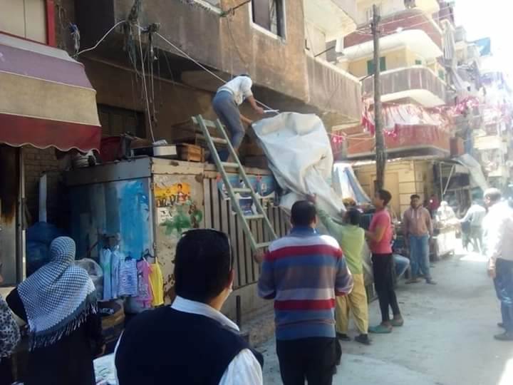 تم الدفع بحملة صباحية مكبرة لازالة الاشغالات والتعديات التند ؛التعريشات والاكشاك الغير مرخصة من شارع ١١ بمنشية النزهة.