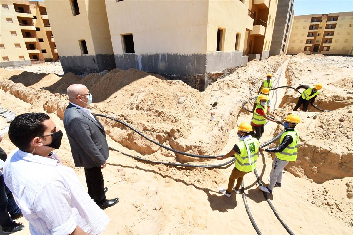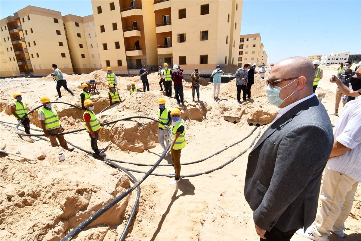 وقال الدكتور عاصم الجزار: جارٍ بالمدينة تنفيذ 4340 وحدة سكنية كمرحلة أولى بمشروع الإسكان الاجتماعى، على مساحة 202 فدان، وبلغت نسبة الإنجاز 78 %، ومن المقرر الانتهاء من تنفيذها يونيو المقبل، بجانب تنفيذ عدد من المشروعات الخدمية بالمشروع (مدرسة تعليم أساسي - مركز شرطة ووحدة مطافي - سوق تجارية - نادٍ اجتماعي - مركز طبي - حضانة - مسجد)، بالإضافة إلى تنفيذ أعمال المرافق بالمشروع (طرق ــ مياه ــ صرف صحي ــ رى ــ كهرباء)، موجها بتنفيذ عدد من المحال التجارية أسفل العمارات فى الشوارع الرئيسية بالموقع، من أجل توفير حالة من الحركة والحيوية بالموقع.