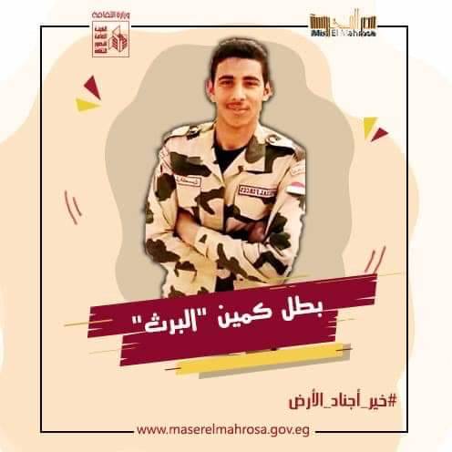 ردا على الحادث الإرهابي الغادر الذي اغتيل فيه أولادنا في كمين "بئر العبد"، قبل أيام قليلة، واستشهاد عدد من ضباط وجنود الجيش المصري، قررت مجلة "مصر المحروسة" أن تستكتب عددا من الكتاب والصحفيين لكتابة سلسلة من البورتريهات الصحفية عن أبطال وشهداء الجيش المصري منذ حرب الاستنزاف، وحتى الحرب الدائرة الآن في سيناء والحدود المصرية مقاومة للإرهابيين ودفاعا عن هوية الدولة المصرية وحدودها وسيادتها.