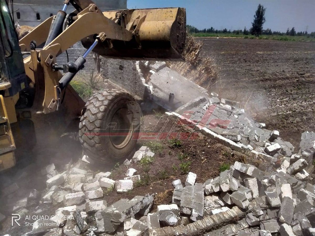 إزالة عدد 8 حالات تعدٍ علي الأراضي الزراعية بمساحة 2432 مترا بقري المسين وكوم زمران بالدلنجات عبارة عن مبان مقسمة من الطوب الأبيض والمونه الاسمنتية، و إزالة 7 حالات تعدٍ وبناء مخالف علي حرم أملاك ترعة الخندق الشرقي بمساحة 1990 مترا بايتاي البارود، وإزالة حالة تعدٍ علي الأراضي الزراعية بمساحة 360 مترا بالرحمانية وإزالة 9 حالات تعدٍ لأملاك النيل بمساحة 164 مترا مربعا بقرية محلة بشر بشبراخيت عبارة عن حجرات بالطوب الابيض وسقف خرسانى.