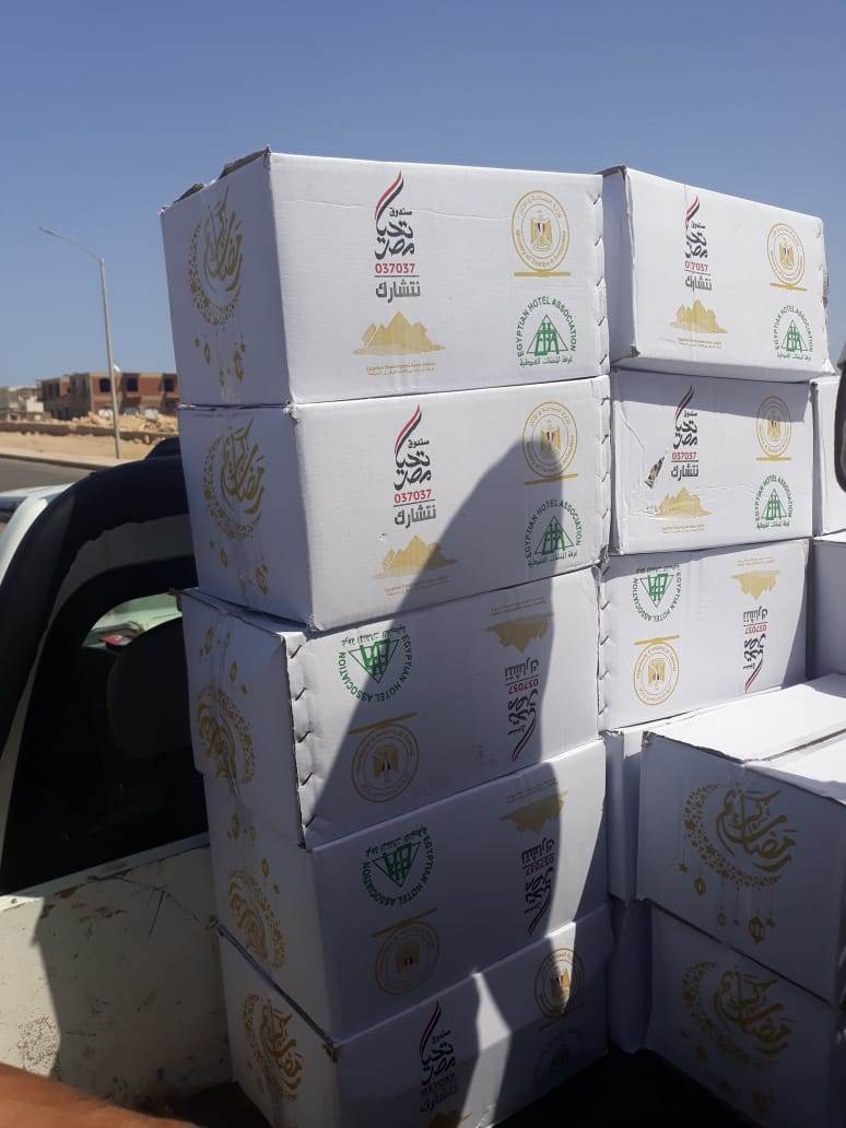 وقام بتوزيع هذه الكراتين مكاتب الوزارة بالمحافظات المختلفة وبالتعاون مع مكاتب غرفتى المنشآت الفندقية والشركات، والمحافظات.