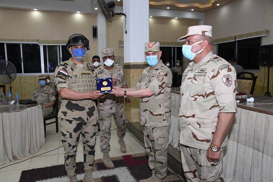 وأدار حواراً مع القادة والضباط وضباط الصف والجنود إستمع فيه لأرائهم وإستفساراتهم وناقشهم فى كل ما يدور بأذهانهم فى مختلف المجالات لتوحيد المفاهيم تجاه مختلف الموضوعات والقضايا فى ظل قيام القوات المسلحة فى معاونة أجهزة الدولة لمجابهة انتشار فيروس كورونا ، كما قام بتكريم عدد من المتميزين من تقديراً لآدائهم لمهامهم بتفان وإخلاص خلال الفترة الماضية.