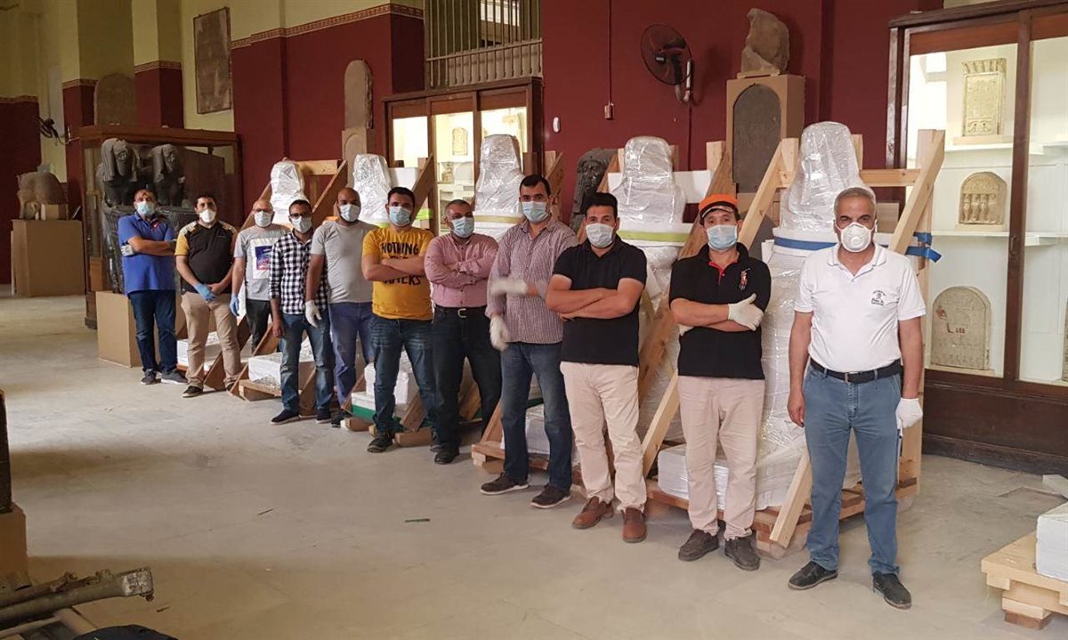 من جانبه أوضح الدكتور عيسى زيدان مدير عام الشؤون التنفيذية للترميم ونقل الاثار بالمتحف المصري الكبير أن فريق العمل حرص على توثيق وتغليف وتأمين القطع بالطرق العلمية المتعارف عليها دوليا قبل عملية النقل مشيرا إلى أن المجموعة التي تمً نقلها تم توثيقها علميا وإعداد تقرير حالة لكل تمثال بالإضافة إلى تغليف كل تمثال علي حدى داخل صندوق L shape مبطن بالفوم المقوي وتدعيمه بأحزمة ربط منعا لأي اهتزازات أثناء عملية النقل.