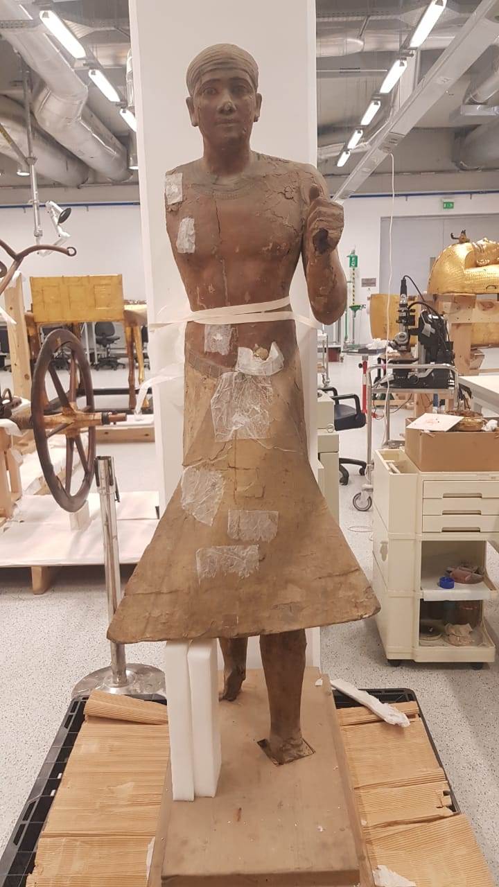 وقد تم ايداع التماثيل الخشبية داخل معمل الاخشاب تمهيدا للبدء في أعمال الترميم والصيانة لها حتي تكون جاهزة للعرض عند افتتاح المتحف.