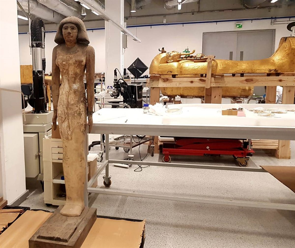 وأضاف د. زيدان أنه تم نقل أيضاً تمثال لشخص يدعي آختي حوتب يرتدي نقبه منتفخه عليها طبقه من الجص الملون بالاضافه إلى تمثال آخر من الخشب لسيده من عصر الدوله القديمة.