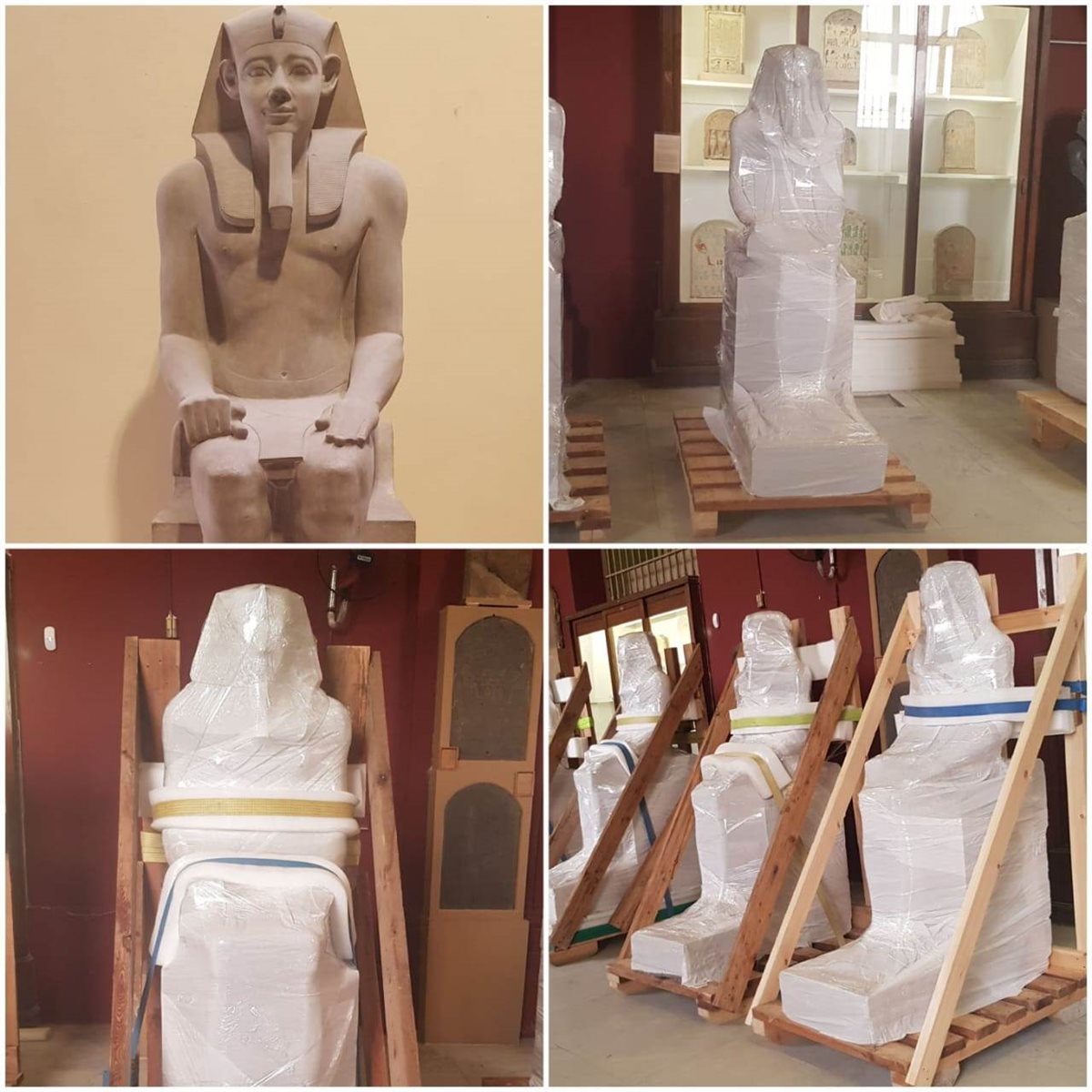 عاجل.. وصول تماثيل سنوسرت للمتحف المصري الكبير