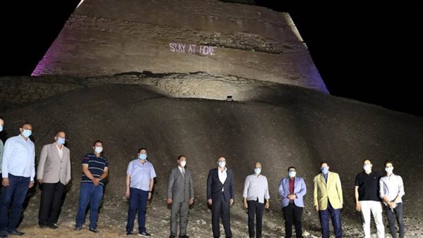 وتفقد محافظ بني سويف الهرم بعد إضاءته بعد حوالي 10 سنوات من الاطفاء " عقب أحداث يناير 2011 "، وتم تضمين إضاءة الهرم برسالة إلى الشعب المصري وجميع شعوب العالم بالبقاء في المنزل وحماية أنفسهم.