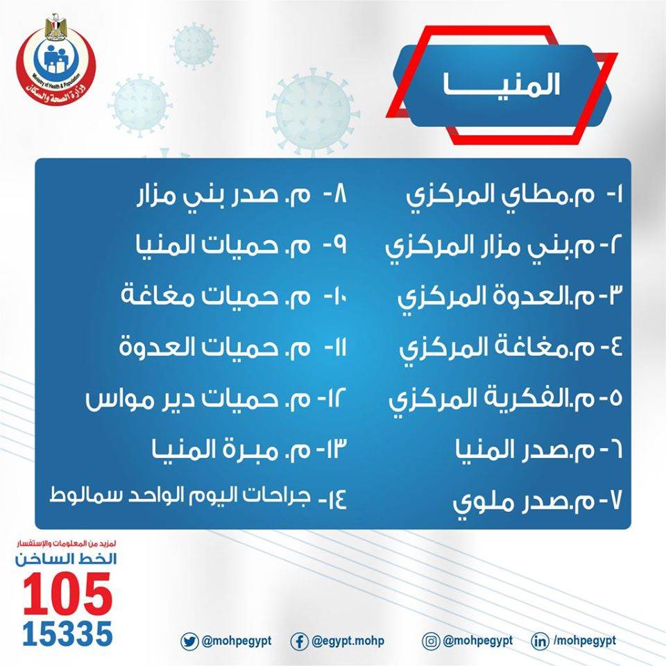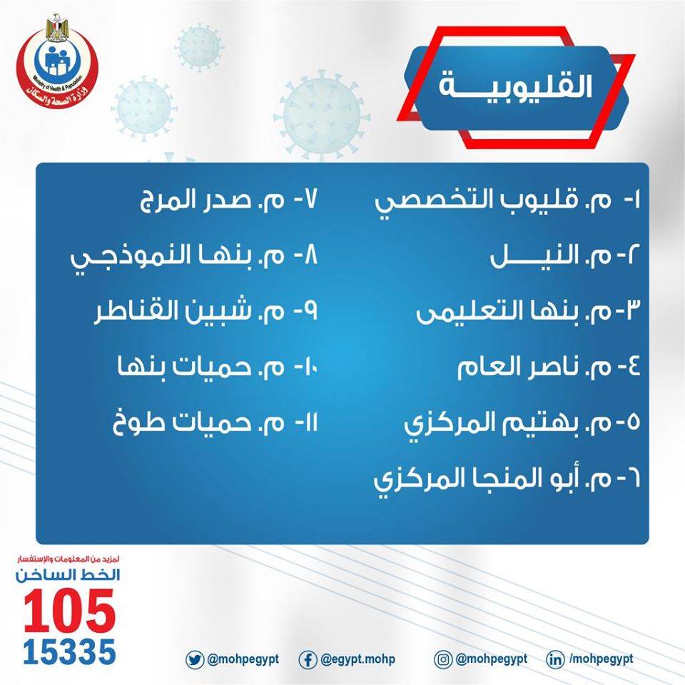 تضم القائمة الجديدة لمستشفيات العلاج والعزل الصحي، لمصابي فيروس كورونا في مصر، 320 مستشفى، موزعة على كافة محافظات الجمهورية، بحيث تغطي كافة الأقاليم، وتستوعب الأعداد المصابة يوميًا، وتشتمل على كافة التجهيزات المطلوبة للعلاج والحفاظ على حياة المرضى والأطقم الطبية على حد سواء.