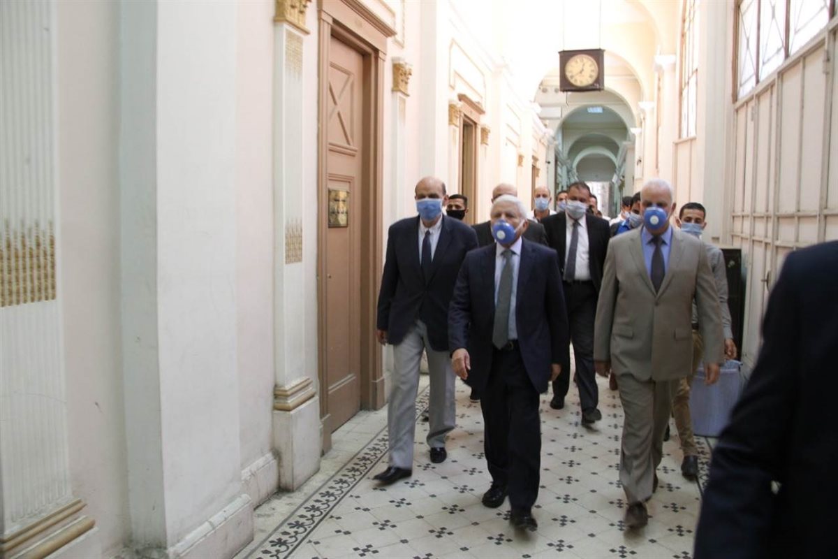 وأوضح المستشار محمد رضا، نائب رئيس محكمة النقض والمستشار الإعلامي لرئيس المجلس، أن ذلك جاء أثناء قيام رئيس المجلس برفقة مساعديه من قيادات المحكمة بتفقد قاعات المحكمة وأروقتها، والاطمئنان على تعقيمها واتباع الإجراءات الوقائية والاحترازية.
