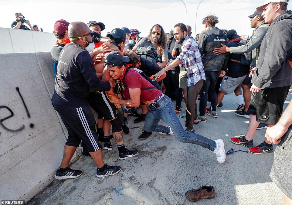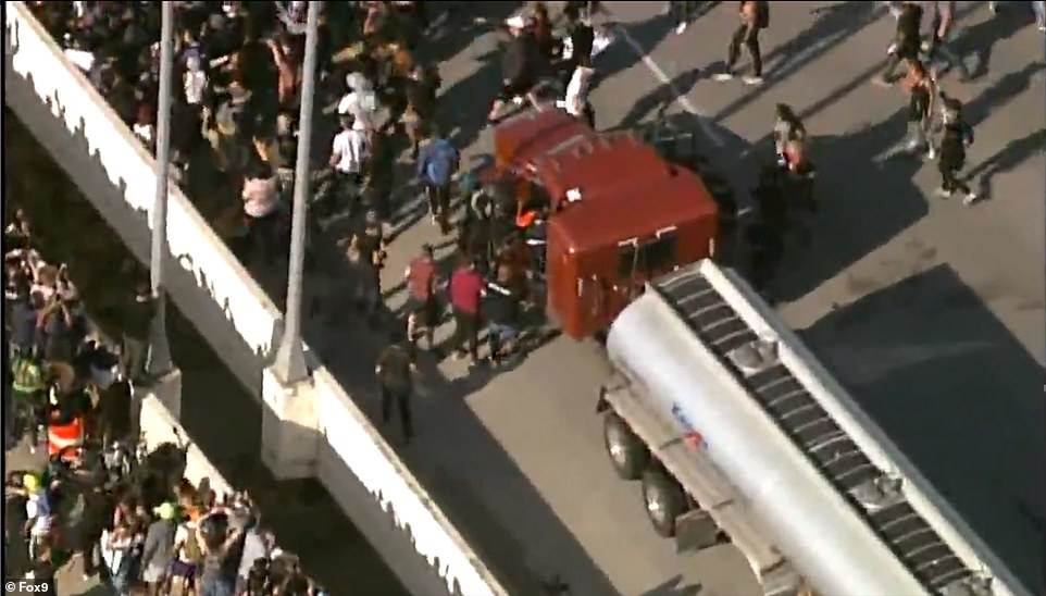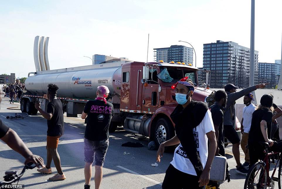 وأظهر مقطع “فيديو” تم تصويره فى حوالي الساعة السادسة مساءا بالتوقيت المحلى الأمريكي، شاحنة نقل وقود ضخمة تخترق حشود المتظاهرين بسرعة وتمكن المتظاهرون من السيطرة عليها والقبض على السائق وتسليمه إلى الشرطة.