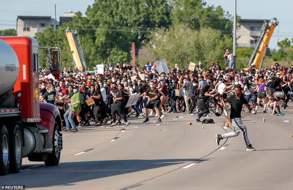 مشهد مماثل لما حدث فى شارع القصر العيني، عندما أصطدمت سيارة دبلوماسية من السفارة الأمريكية بالقاهرة، وقتلت عدداً من المتظاهرين وأتهام أجهزة الأمن المصرية بإرتكاب الواقعة من أجل تأجتج المظاهرات، ولكن لأنه هذه الواقعة ليس ورائها مؤامرة، تمكن المتظاهرون الأمريكيون من السيطرة على شاحنة نقل وقود مساء أمس الأحد عندما كادت أن تحصد آلاف الأرواح من المتظاهرين الأمريكيين على مقتل جورج فلويد، واختراق حشودهم على طريق وسط مدينة مينيابوليس.