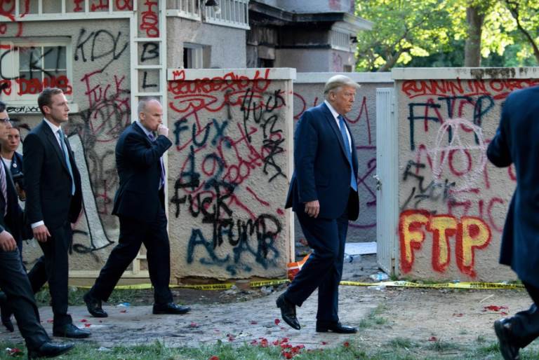واتهم ترامب بأن تغريداته تثير الفتنة وتشعل الأحداث يوم الجمعة الماضي بعد أن غرد "عندما يبدأ النهب، يبدأ إطلاق النار". واستخدم الخط الشهير قائد شرطة ميامي السابق العنصري والتر هيدلي في الستينيات. ثم اتهم الرئيس بإشعال الفتنة في الولايات المتحدة من خلال الزعم بأنه غرد فقط بالرسالة كتحذير للسلامة العامة، بدلاً من تهديد أي شخص في الشوارع. صباح يوم السبت، غرد ترامب أنه `` لم يكن يشعر بمزيد من الأمان '' أثناء مشاهدة أعمال الشغب خارج البيت الأبيض، فقط ليظهر لاحقًا أنه فر إلى مخبأ تحت الأرض شديد الأمان عندما بدأت الاضطرابات.