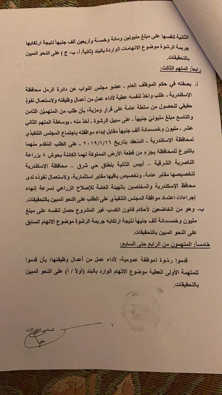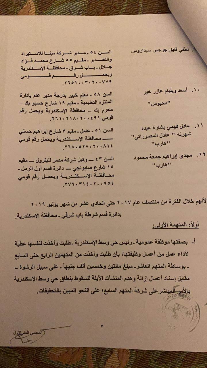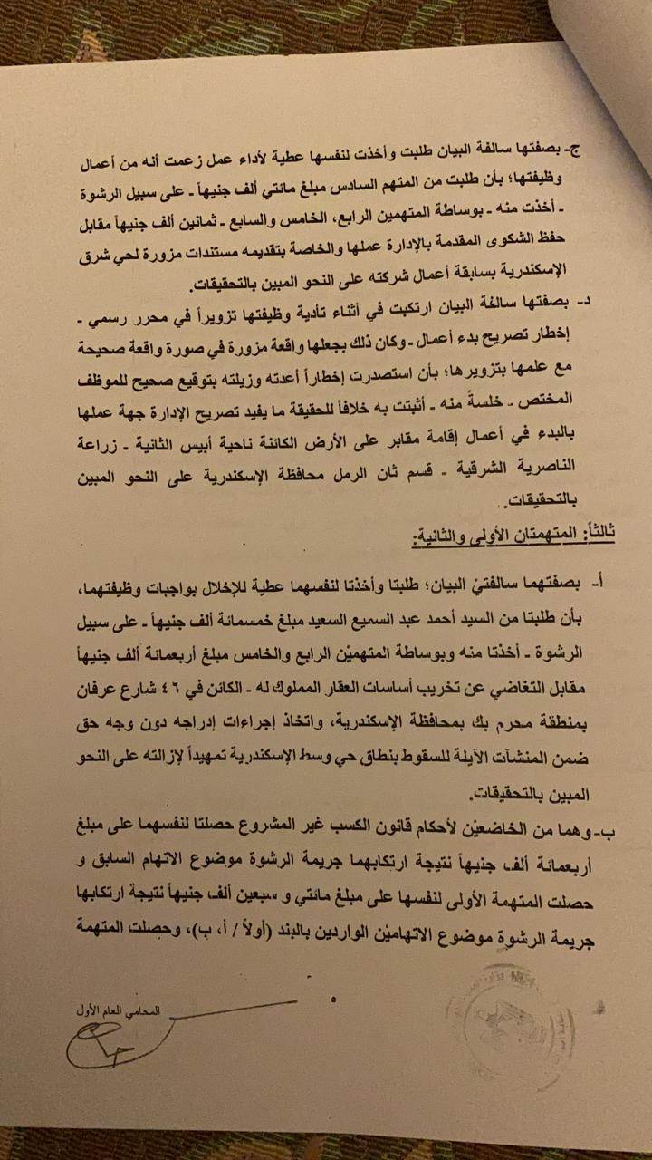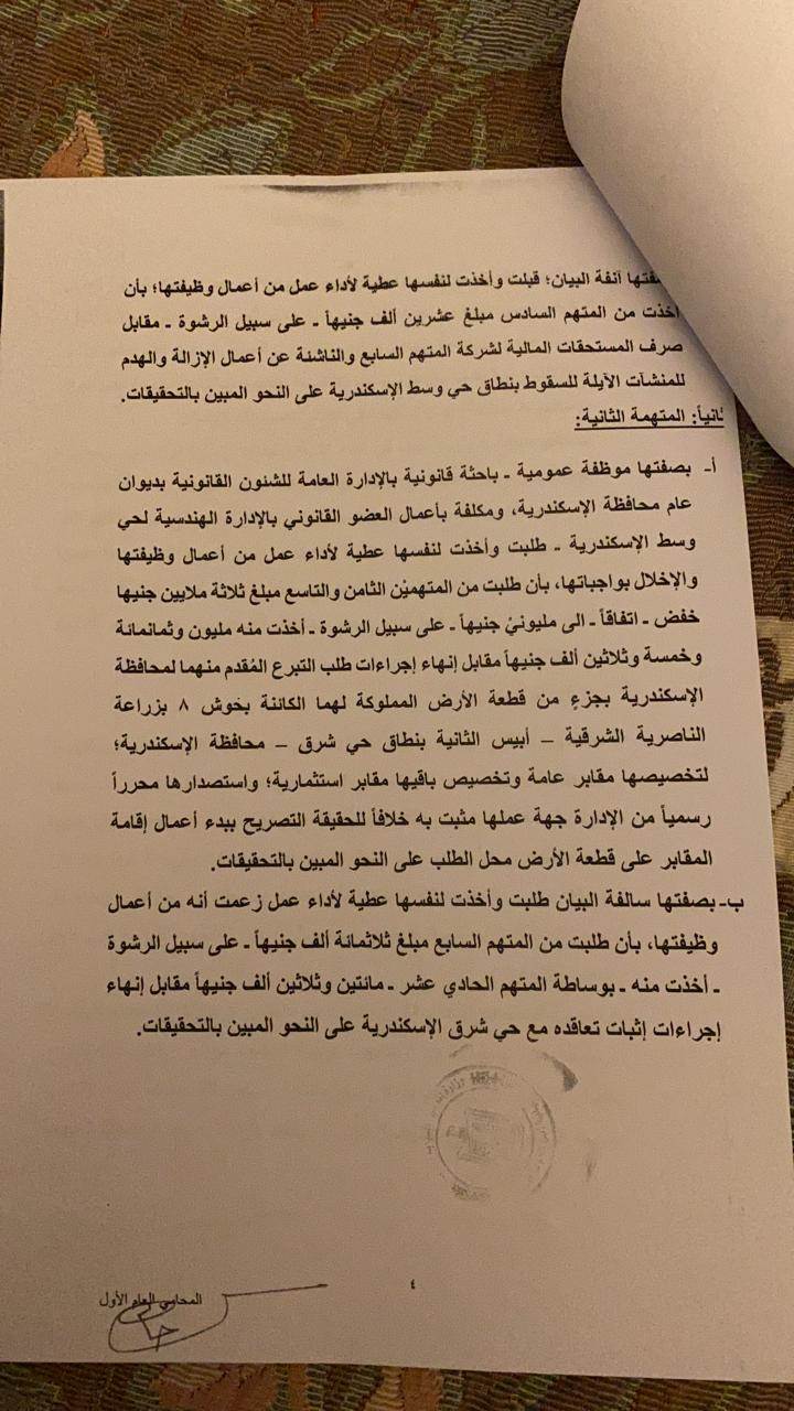كذلك التغاضي عن تخريب عقار بنطاق الحي، والحصول على ٤٠٠ ألف جنيه لغض الطرف .