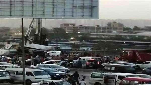 تلقت غرفة عمليات الادارة العامة للمرور بلاغا بانقلاب سيارة نقل محملة ب "سن" واصطدام ٣ سيارات ملاكي وذلك أعلي الطريق الدائري القادم من المعادي اتجاه المنيب اعلي البساتين، وعلي الفور تم نشر الخدمات المرورية لتنظيم حركة السير وسحب الكثافات، كما تم الدفع بالاوناش المرورية لرفع اثار الحادث من الطريق.