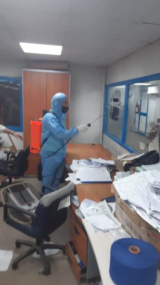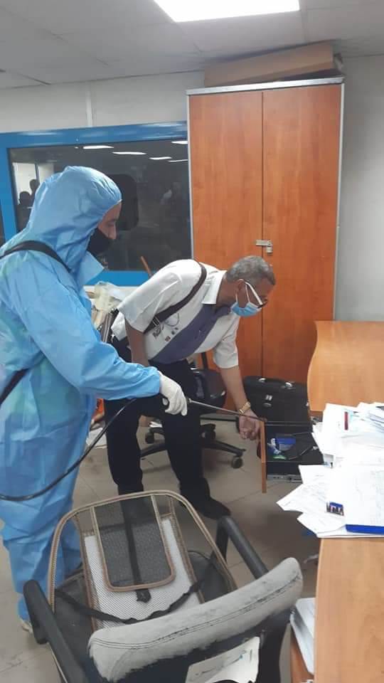 وفى بورسعيد وتحت إشراف يسرى رجب رئيس الإدارة المركزية لجمارك بورسعيد والمنطقة الحرة وعضو اللجنة المشكلة بقرار رئيس مصلحة الجمارك رقم 55 لسنة 2020 وبالتنسيق مع الأستاذة نانى عسل مدير إدارة الشؤون الإدارية والمهندس محمد عبد السلام، مدير إدارة السلامة والصحة المهنية للمنطقة الشرقية بالأمن الجمركي ، تم التعقيم الدوري للمباني الجمركية ببورسعيد ومبنى الإدارة المركزية لجمارك بورسعيد متضمناً مركز الخدمات اللوجستية ببورسعيد .