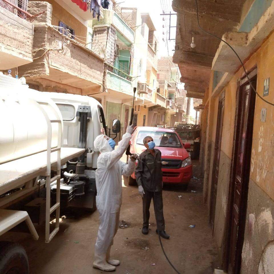 وقام حي غرب سوهاج بأعمال التعقيم والتطهير بقطاع غرب "شارع الصحافة، وشارع المقابر القديمة وحارة بركات، وحارة الوسطاني".